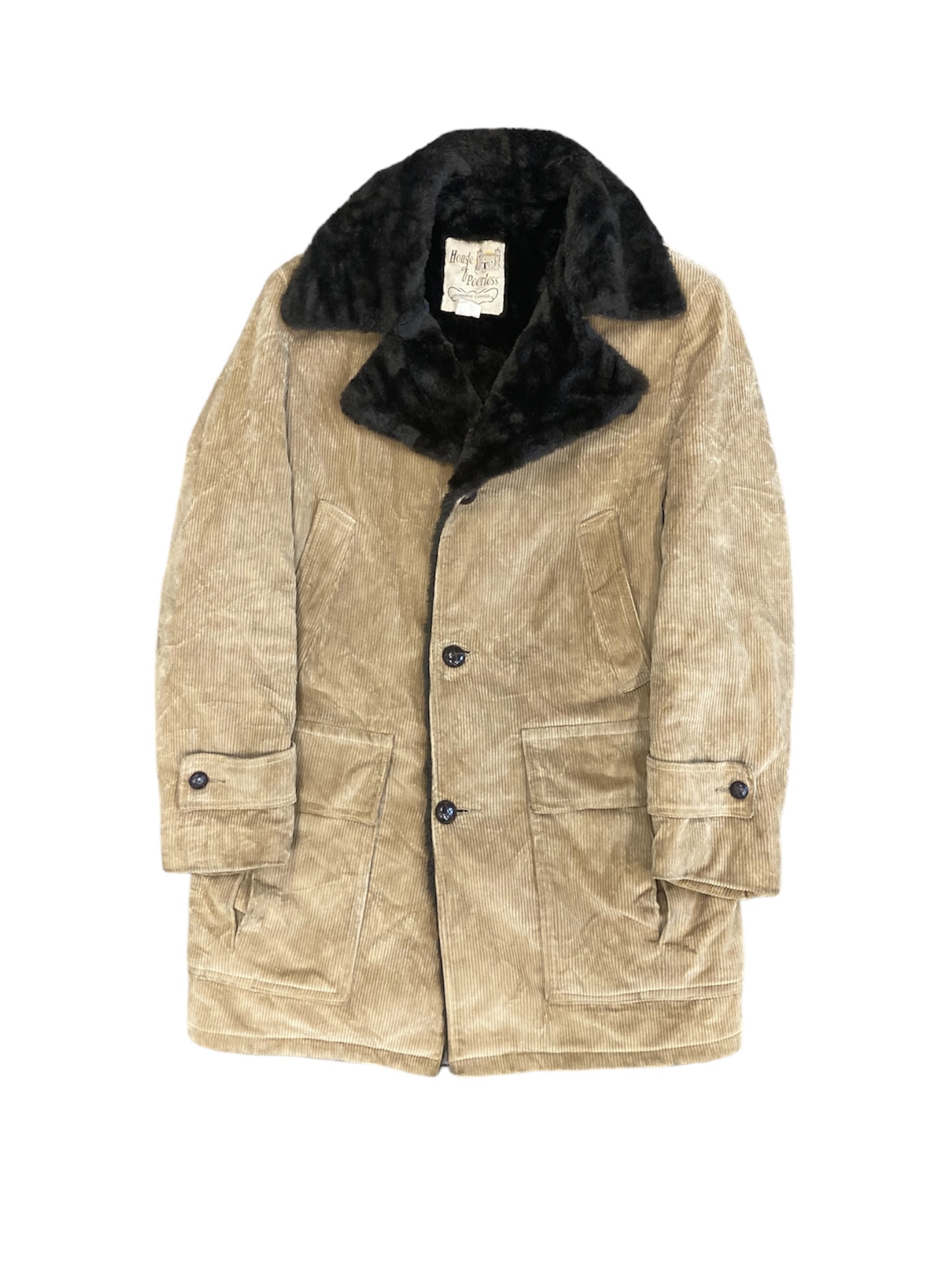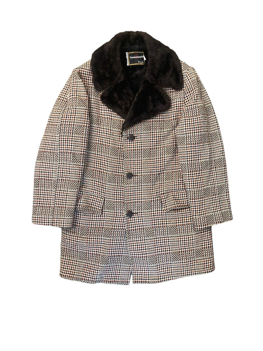 Wool coat, closes on right side – big collar, big buttons, can be slim fit / bell silouhette style (more 60’s)