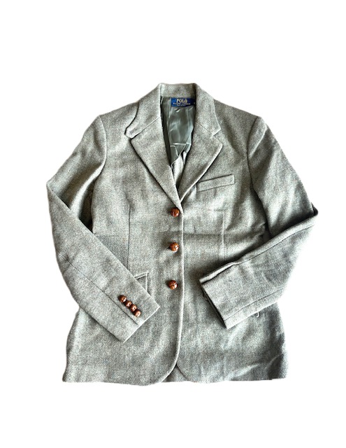 branded- blazer that closes on left side – can be thin or thick, brands like Ralf Lauren, Calvin Klein and similar