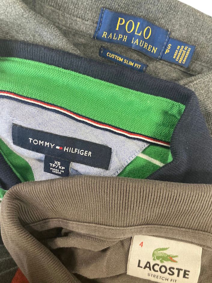 branded polo – tennis shirt with 3 buttons, cotton, can have stripes/pattern – of brands Ralf Lauren, Tommy Hilfiger, Lacoste