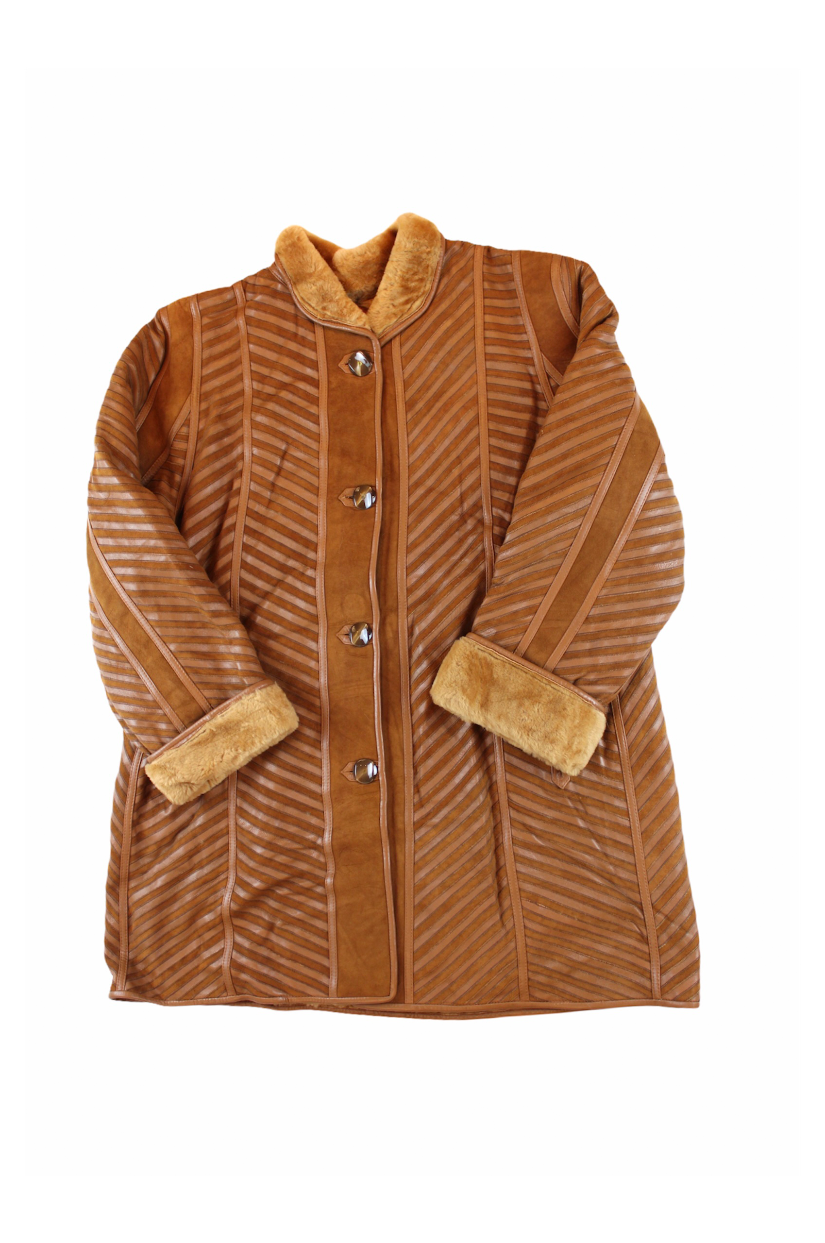 Usually soft sheepskin/suede with lammy lambswool lining – closes on left side