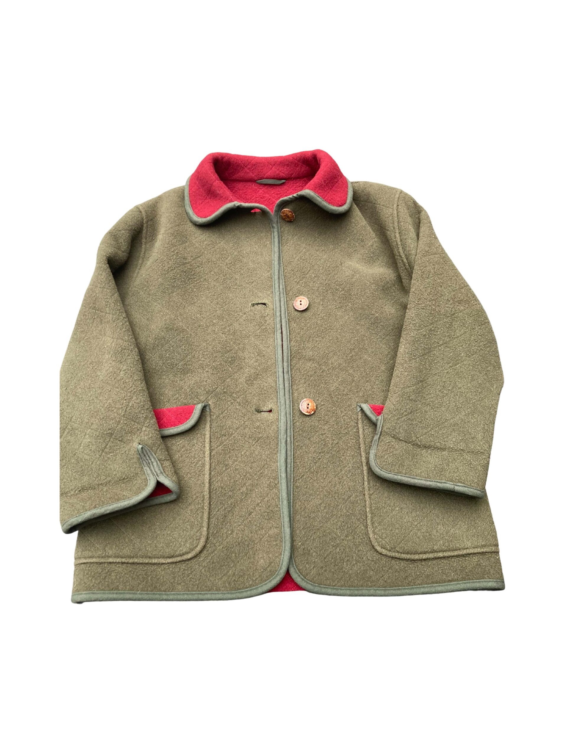 unbranded – brushed wool look or leather – wooden/bone/metal buttons