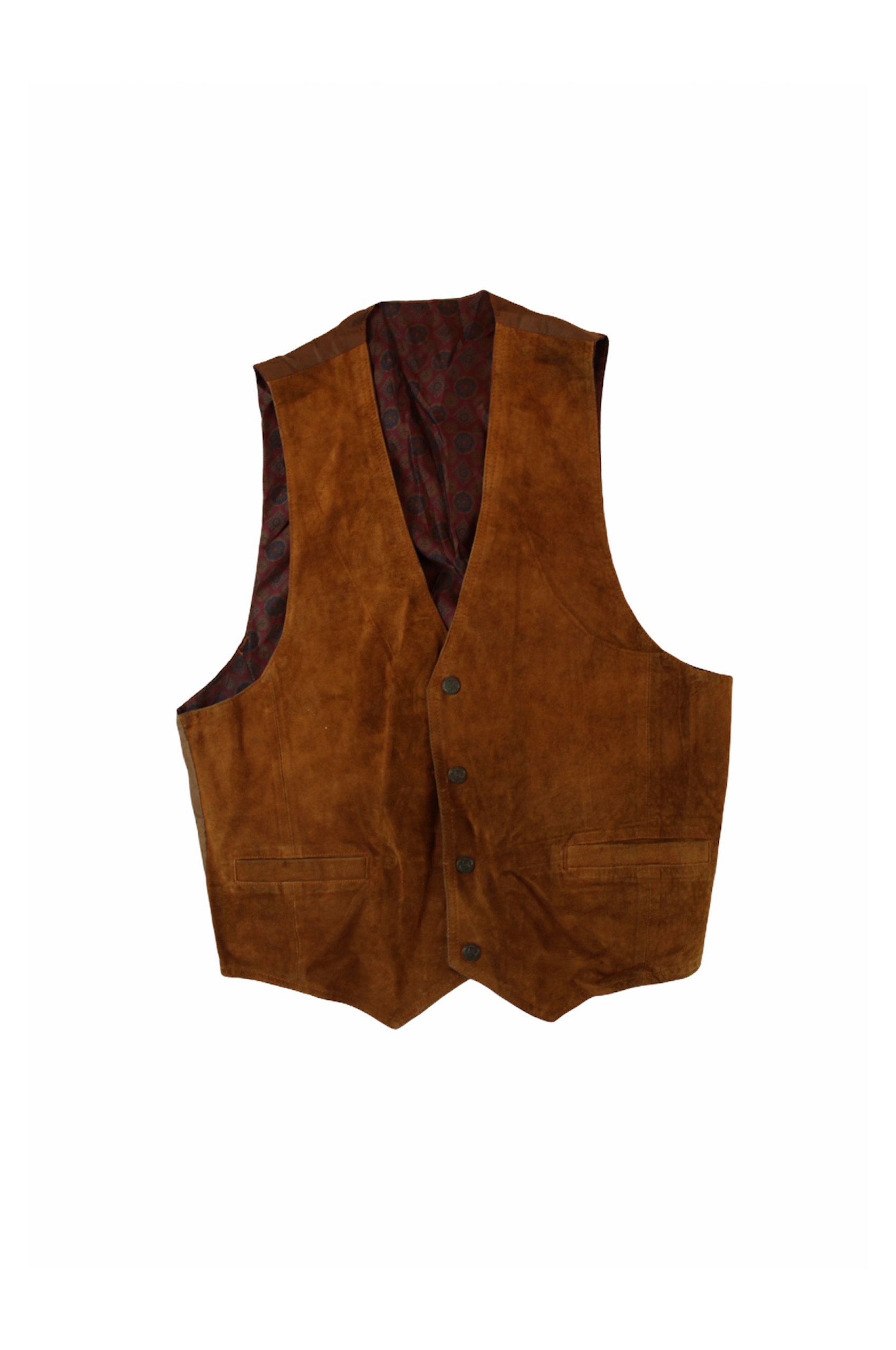waistcoat made out of leathersometimes with a satin back panel, can be tightened at the back, closes with buttons