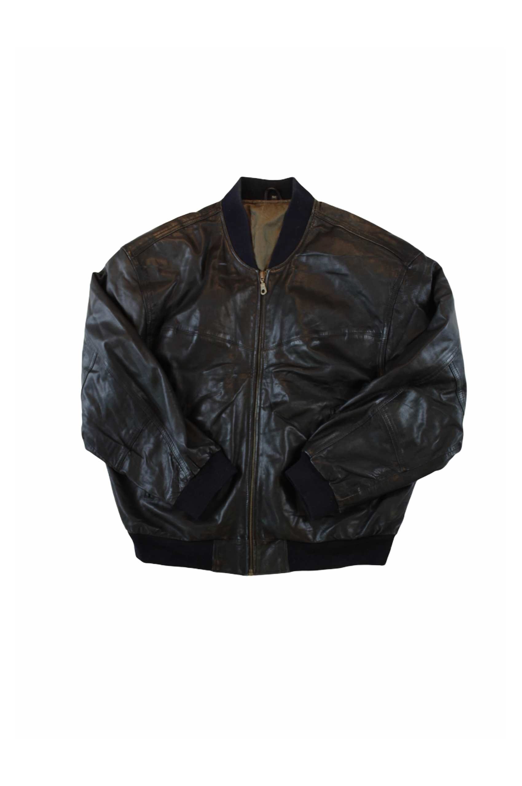 leather bomber jacket that has sweatshirt rims and hems