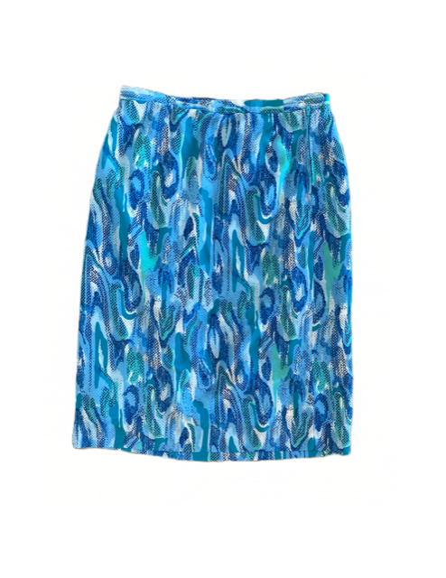 unbranded, form fitting skirt, looks like a mini but is longer, cotton or polyester, printed or not, thin suitable for summer