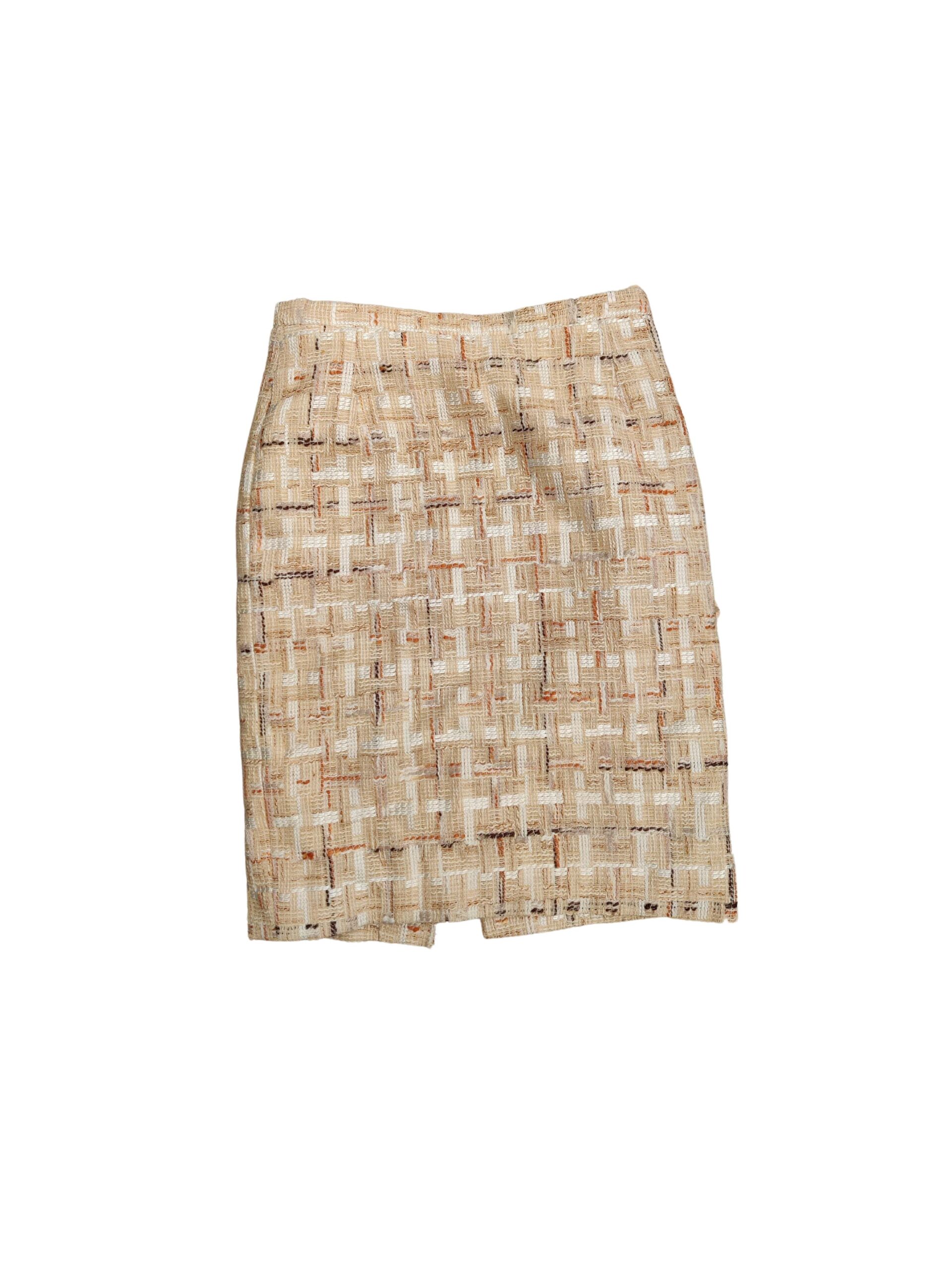 tight fitting above the knee or on the knee office skirt, of thick materials suitable for winter