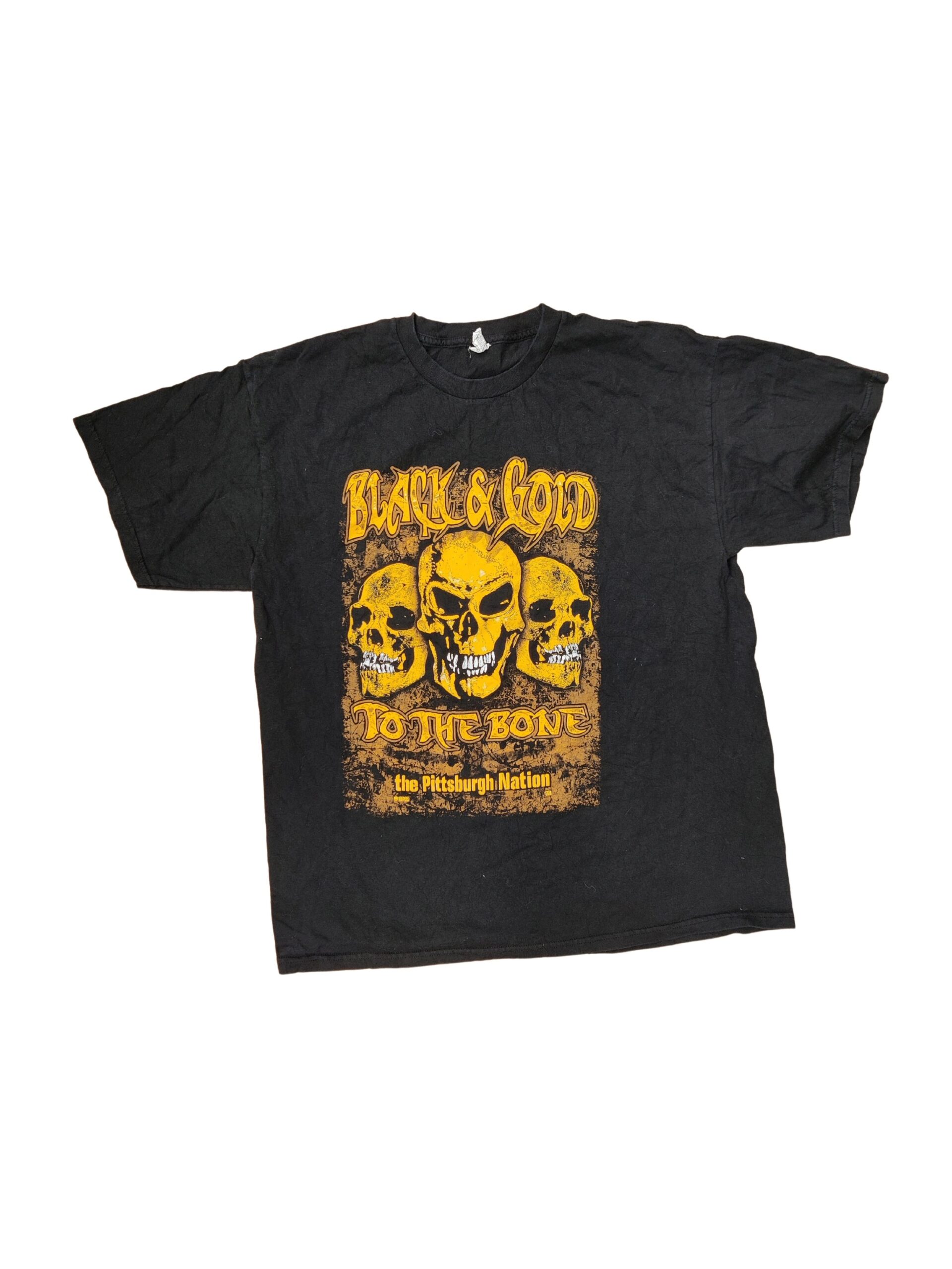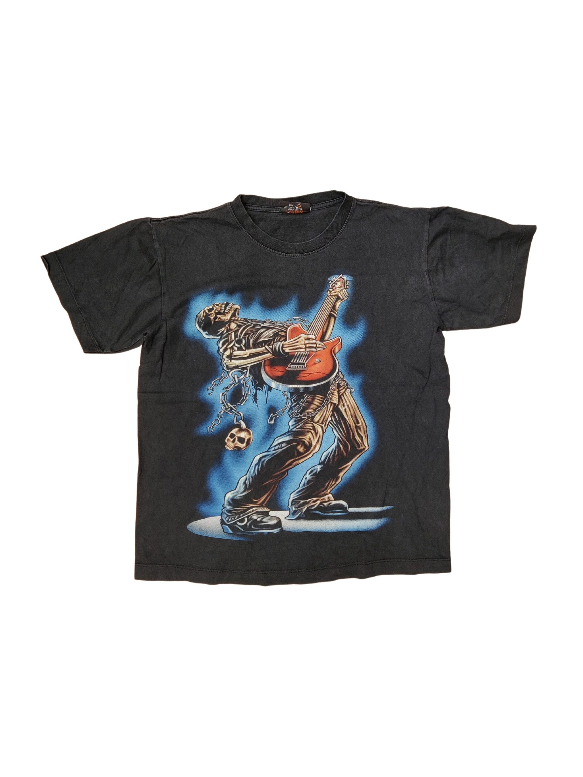 t-shirts often black, with skulls and skeletons on them